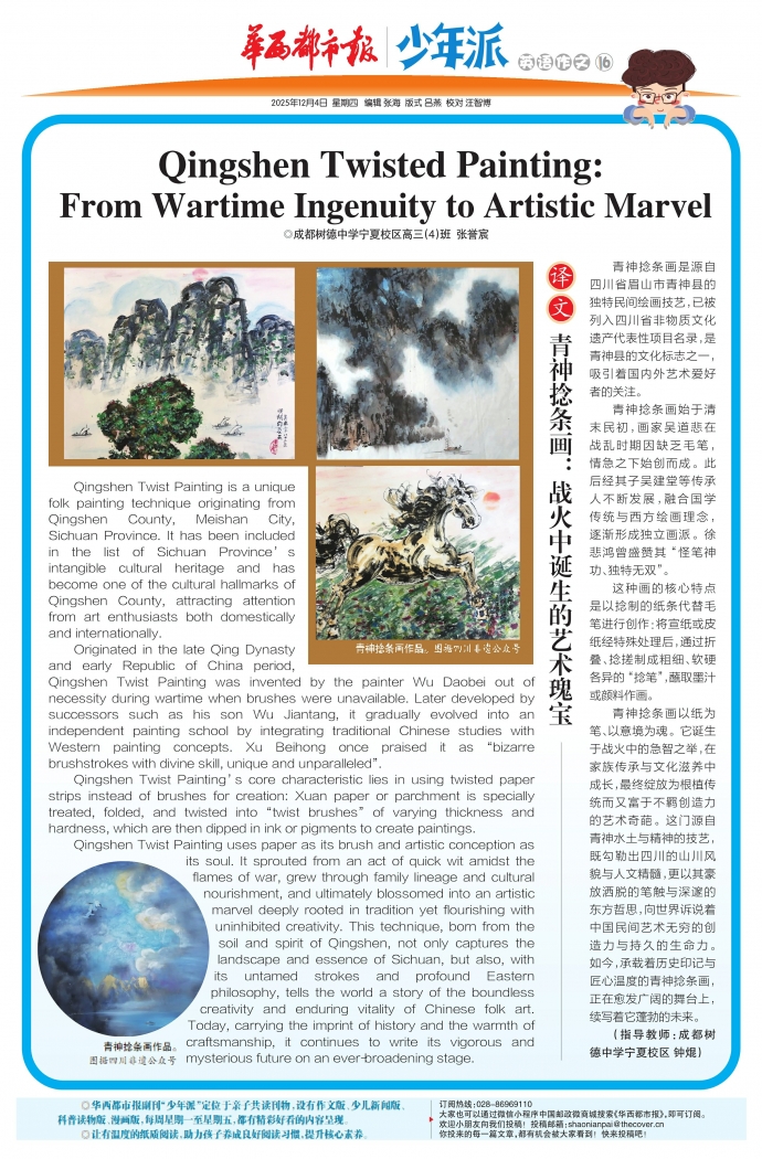 Qingshen Twist Painting uses paper as its brush and artistic conception as its soul. It sprouted from an act of quick wit amidst the