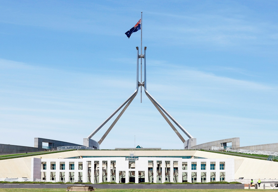 12月15日,澳大利亚首都堪培拉的国会大厦降半旗悼念悉尼邦迪滩枪击事件遇难者。 新华社发