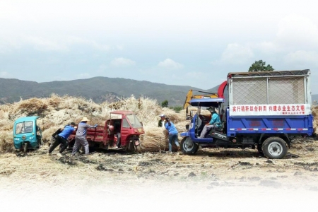 农民正在进行秸秆集中粉碎(2024年5月12日摄)。图据新华社客户端