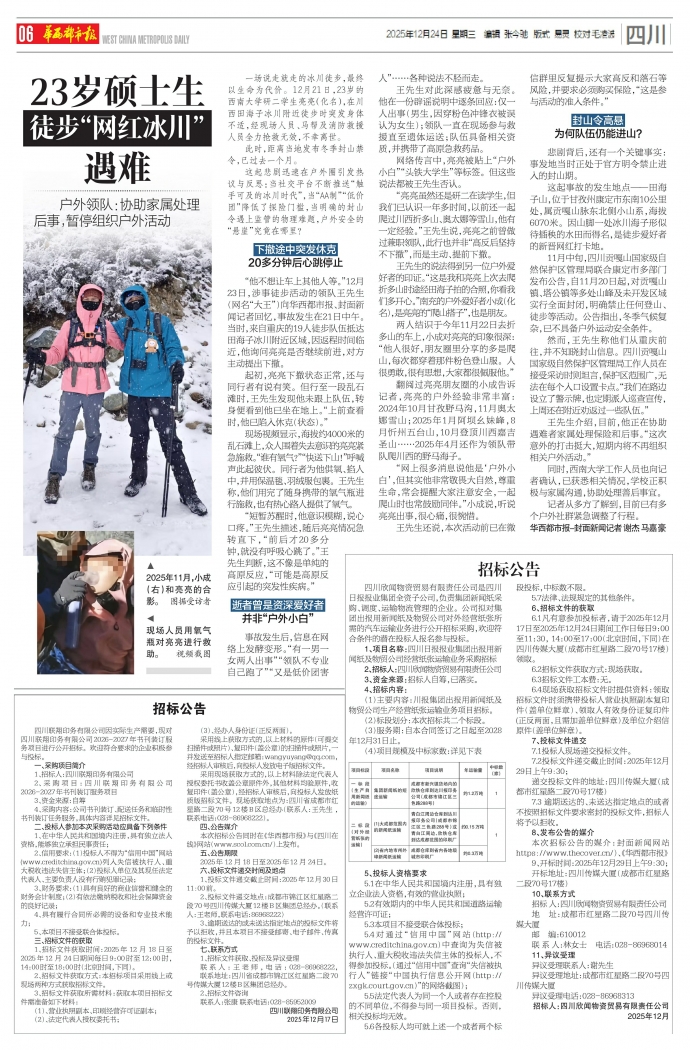 8、发布公告的媒介本次招标公告的媒介:封面新闻网站https://www.thecover.cn/)、《华西都市报》