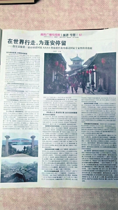 邓四平介绍,17年前,南充市蓬安县在创建国家AAAA级旅游景区时,他撰写了一份创建蓬安嘉陵第一桑梓景区的迎检报告,迎检报告主标题就是《在世界行走,为蓬安停留》。由他撰写的这个报告发表在2009年12月31日的《南充广播电视报》上。