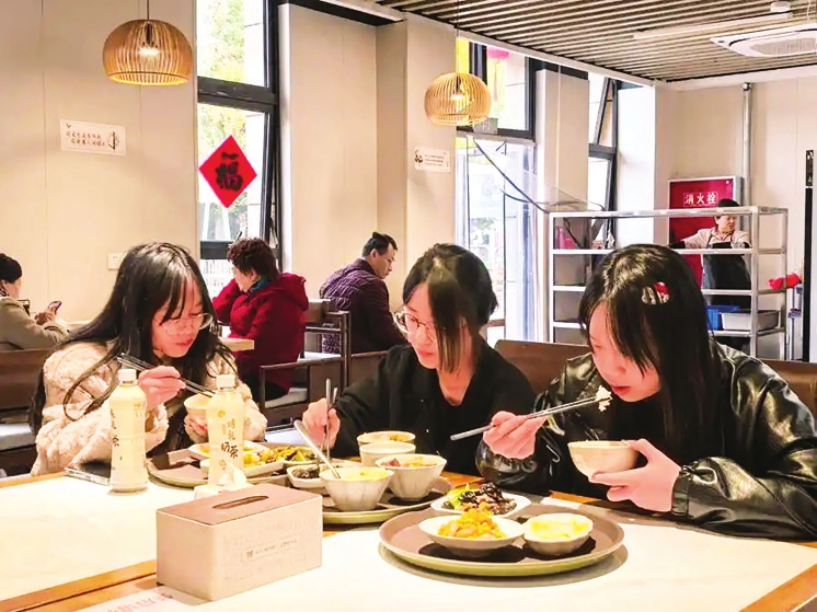 2025年11月18日,年轻人在四川博物院食堂内就餐。 图据新华社客户端