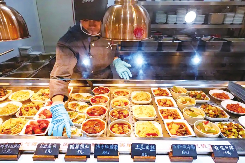 2025年11月18日,四川博物院食堂工作人员布置小碗菜。 图据新华社客户端