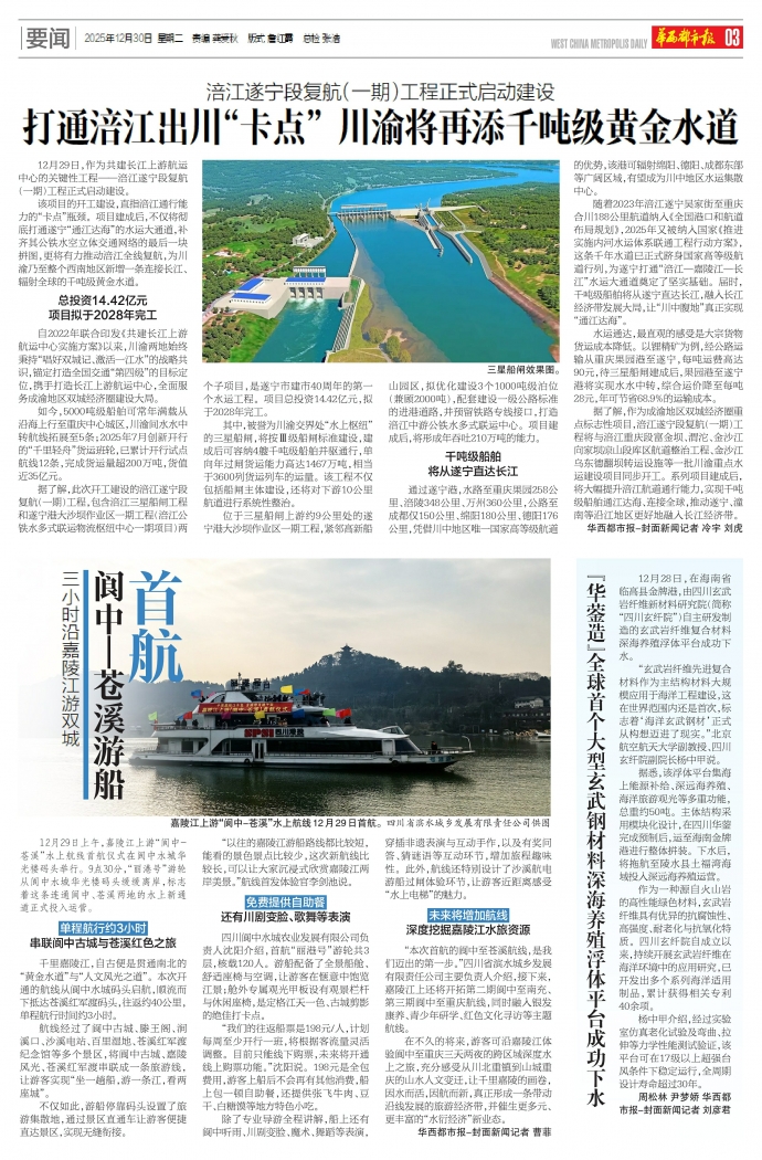 “玄武岩纤维先进复合材料作为主结构材料大规模应用于海洋工程建设,这在世界范围内还是首次,标志着‘海洋玄武钢材’正式从构想迈进了现实。”北京航空航天大学副教授、四川玄纤院副院长杨中甲说。