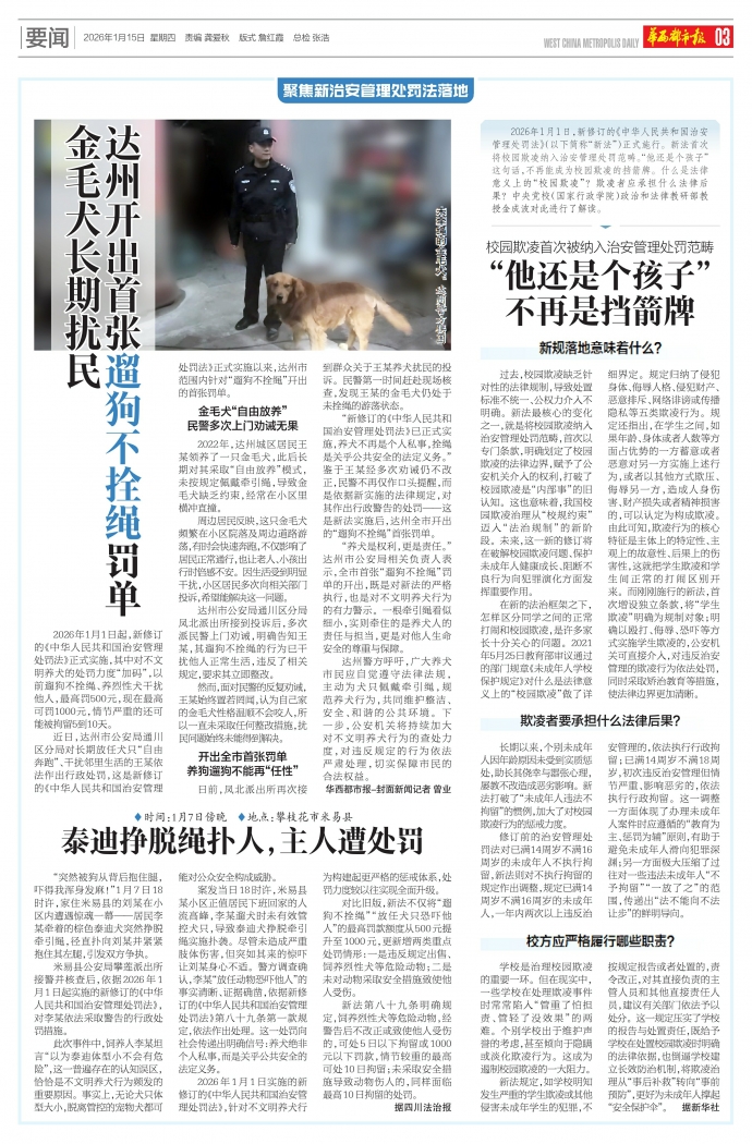 2026年1月1日实施的新修订的《中华人民共和国治安管理处罚法》,针对不文明养犬行为构建起更严格的惩戒体系,处罚力度较以往实现全面升级。