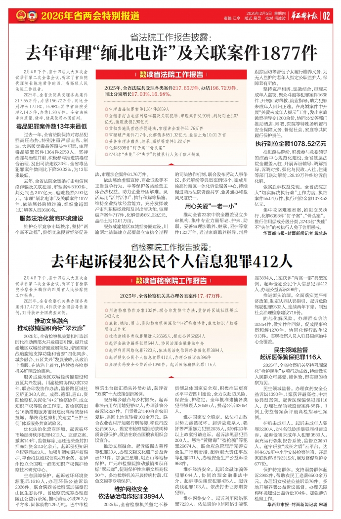 2月4日下午,省十四届人大五次会议举行第二次全体会议,听取了省检察院检察长王麟作的四川省人民检察院工作报告。
