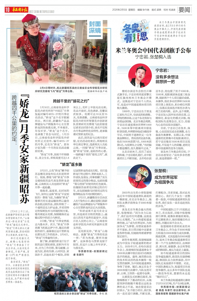 2日晚,“娇龙”月季安然抵达乌鲁木齐。次日,“娇龙”月季再乘飞机抵达伊宁市,随后向着昭苏前行,逐渐靠近这片贺娇龙长期生活工作的故乡。2月4日,“娇龙”月季最终归乡。
