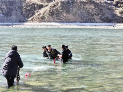 2月24日,甘孜州石渠县公安局洛须派出所民辅警在辖区沿江路段巡逻时,发现一名群众突然跳入江中。高原寒风凛冽,金沙江水流湍急,江水冰冷刺骨,情况万分危急。