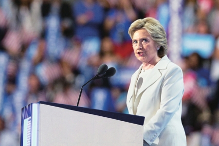 这是希拉里在美国宾夕法尼亚州费城举行的民主党全国代表大会上发表演讲的资料照片(2016年7月28日摄)。 图据新华社客户端