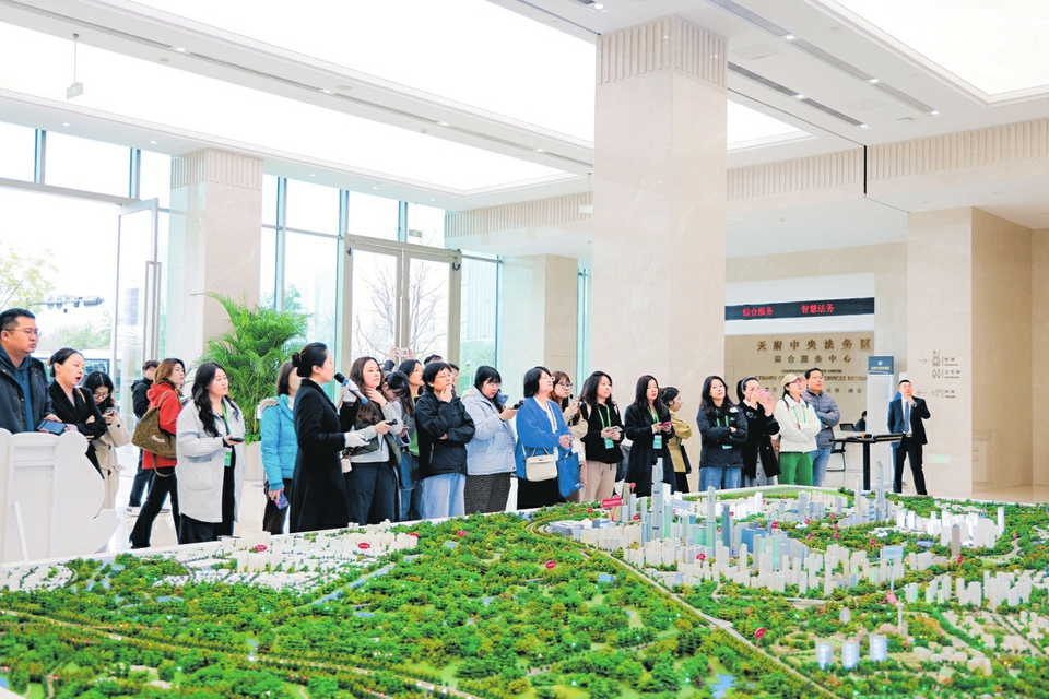 “开窗见绿,穿过公园就能到达法庭……”3月19日上午,采访团走进天府中央法务区。这里与天府中央商务区空间耦合、融合发展,形成9.81平方公里的“一岛一区”联动区域。