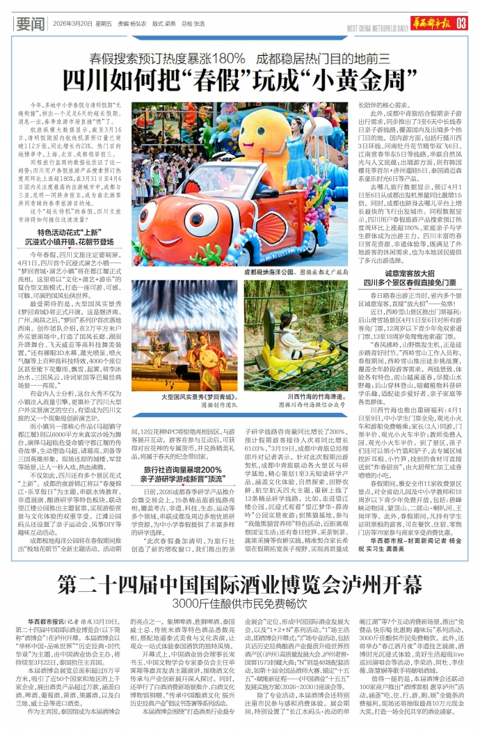 华西都市报讯(记者 徐庆)3月19日,第二十四届中国国际酒业博览会(以下简称“酒博会”)在泸州开幕。本届酒博会以“举杯中国·品味世界”“历史经典·时代华章”为主题,由中国酒业协会主办,将持续至3月22日,泰国担任主宾国。