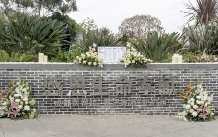 4月1日,清明节前夕,成都医学院在莲花公墓蜀龙园区为59位“无语良师”举行集体生态安葬仪式。成都医学院部分师生、遗体捐献志愿者家属等百余人,在庄重肃穆的仪式上,通过敬献鲜花、诗歌朗诵、医学生宣誓等形式,向用遗体完成教学任务、无私奉献的“无语良师”,致以诚挚的敬意和缅怀。