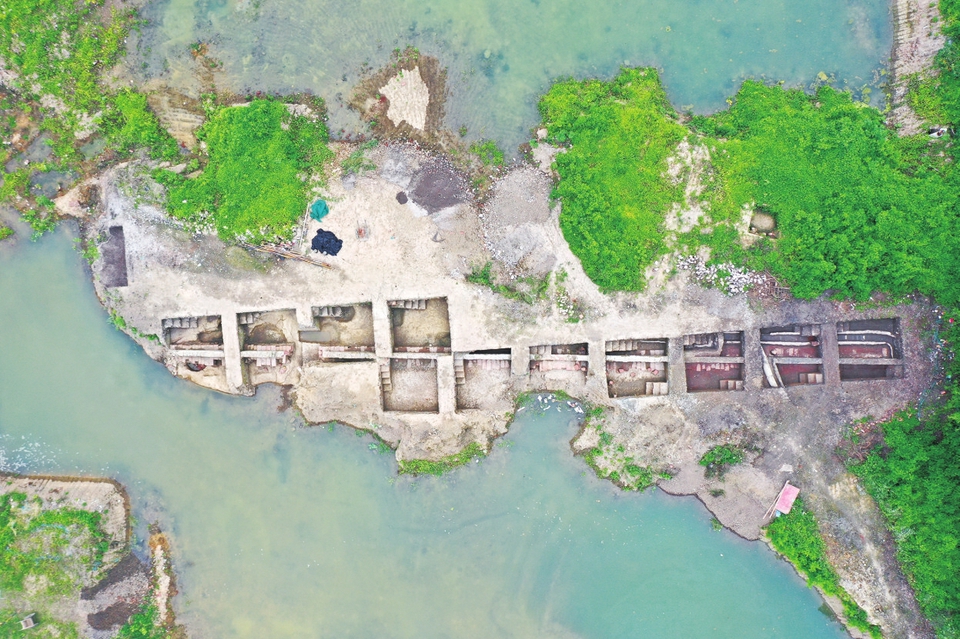 江口沉银遗址现场清理文物。