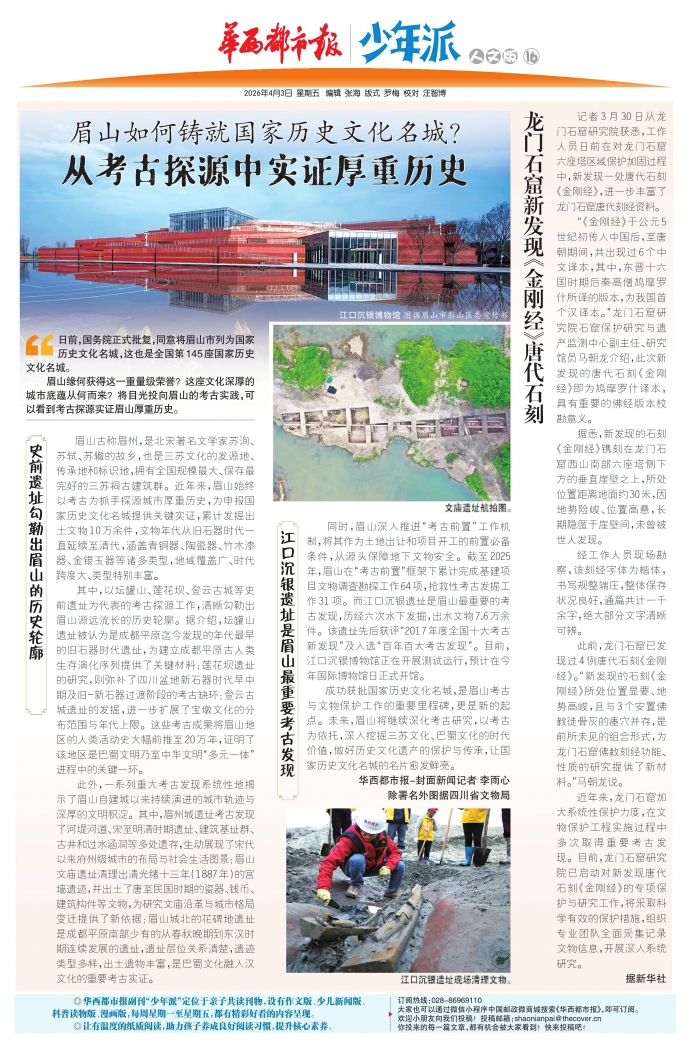 成功获批国家历史文化名城,是眉山考古与文物保护工作的重要里程碑,更是新的起点。未来,眉山将继续深化考古研究,以考古为依托,深入挖掘三苏文化、巴蜀文化的时代价值,做好历史文化遗产的保护与传承,让国家历史文化名城的名片愈发鲜亮。