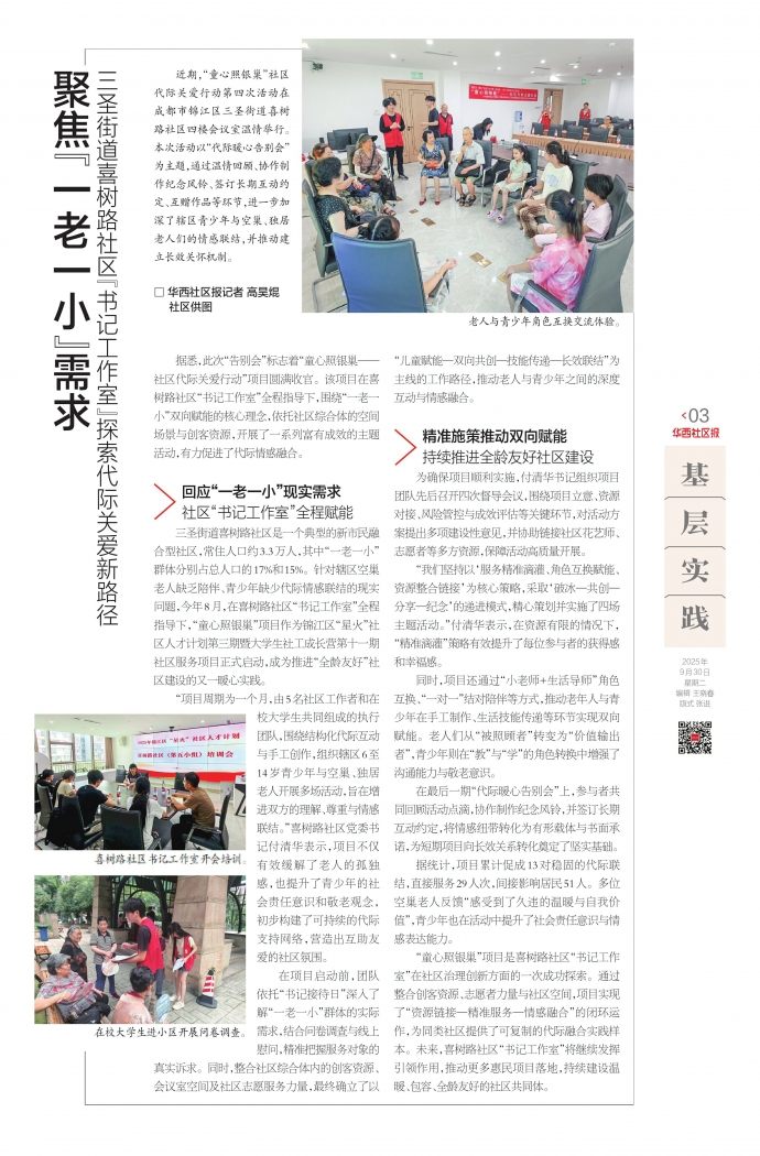 三圣街道喜树路社区“书记工作室”探索代际关爱新路径