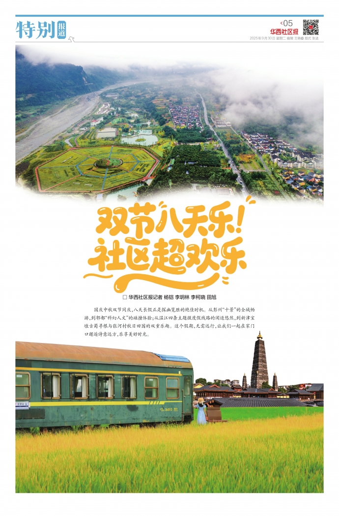 国庆中秋双节同庆,八天长假正是探幽览胜的绝佳时机。从彭州“十景”的全域畅游,到郫都“科幻人文”的碰撞体验;从温江四条主题微度假线路的闲适悠然,到新津宝墩古蜀寻根与张河村秋日田园的双重乐趣。这个假期,无需远行,让我们一起在家门口邂逅诗意远方,乐享美好时光。