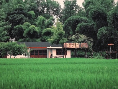 栯禾茶宿:茶宿背倚竹林,窗外麦苗连绵、林盘葱郁,可品茶小憩,也可留宿于此,感受田园生活的安然闲适。