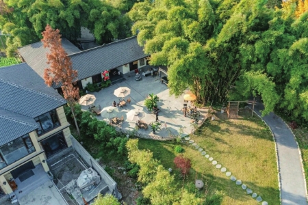 青竹小院:郁郁葱葱的竹林环抱,抬眼望去满目都是治愈的翠绿。沿着石板路向前,便可以看见被竹林包围的青竹小院,在此喝茶聊天,田园美景触手可及。