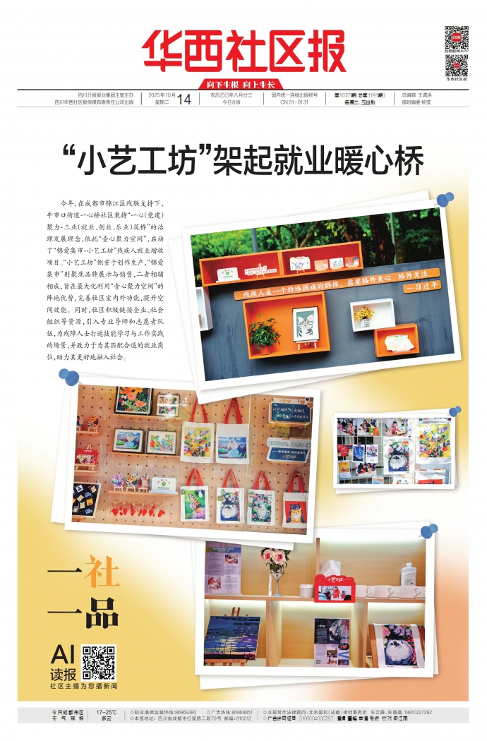 今年,在成都市锦江区残联支持下,牛市口街道一心桥社区秉持“一心(党建)聚力·三业(就业、创业、乐业)筑桥”的治理发展理念,依托“壹心聚力空间”,启动了“锦爱集市·小艺工坊”残疾人就业增收项目。“小艺工坊”侧重于创作生产,“锦爱集市”则聚焦品牌展示与销售,二者相辅相成,旨在最大化利用“壹心聚力空间”的阵地优势,完善社区室内外功能,提升空间效能。同时,社区积极链接企业、社会组织等资源,引入专业导师和志愿者队伍,为残障人士打造技能学习与工作实践的场景,并致力于为其匹配合适的就业岗位,助力其更好地融入社会。