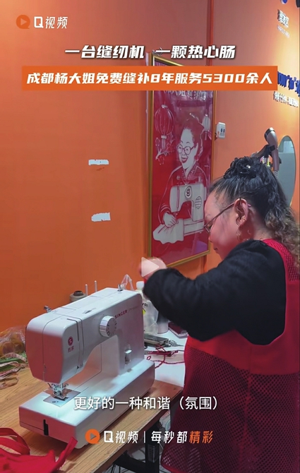 2017年入住青年公寓后,杨秀梅发现许多街坊邻居因工作繁忙无暇缝补衣物。在社区的帮助下,“杨大姐缝纫坊”成立了,她利用周末时间提供义务服务。从磨损的裤脚到脱线的纽扣,她总是一丝不苟地修补,还自费购买布料为困难家庭制作窗帘、坐垫。居民们说:“杨大姐的针线活比商场里的还精细,更难得的是这份真心。”