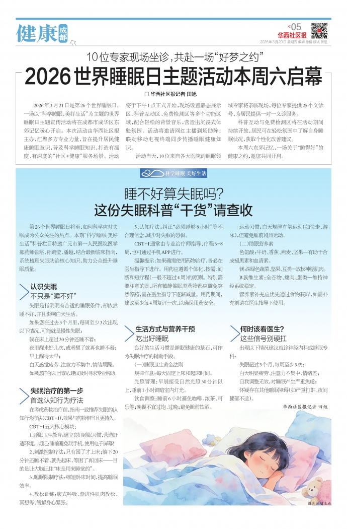 第26个世界睡眠日将至,如何科学应对失眠成为公众关注的热点。本期“科学睡眠美好生活”科普栏目特邀广元市第一人民医院医学部药师张菘、孙婉莹、潘越,结合最新临床指南,系统梳理失眠防治核心知识,助力公众提升睡眠质量。