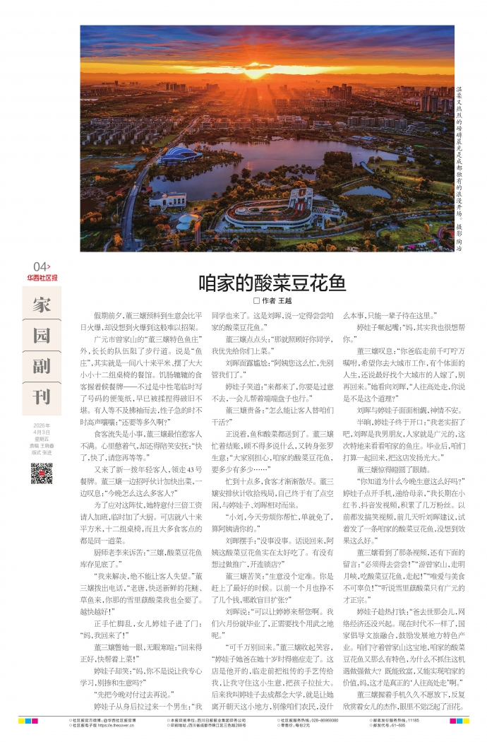 正说着,鱼和酸菜都送到了。董三嬢忙着结账,顾不得多说什么,又转身张罗生意:“大家别担心,咱家的酸菜豆花鱼,要多少有多少……”