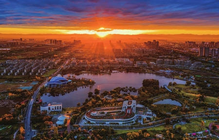 温柔又热烈的磅礴晨光是成都独有的浪漫开场。摄影 陶冶