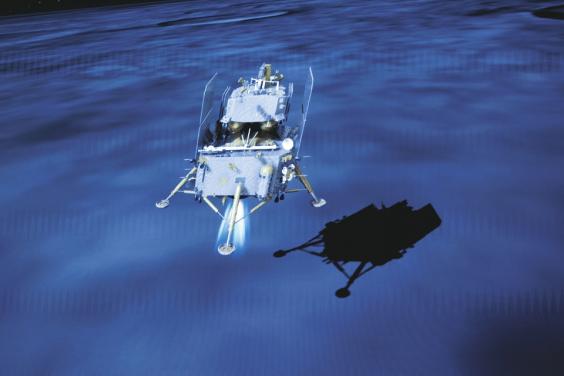 “关键缓冲”确保安全落月——即将到达月面时,发动机关闭,利用缓冲系统保障组合体以自由落体方式到达月面,最终平稳着陆在月球背面南极-艾特肯盆地。