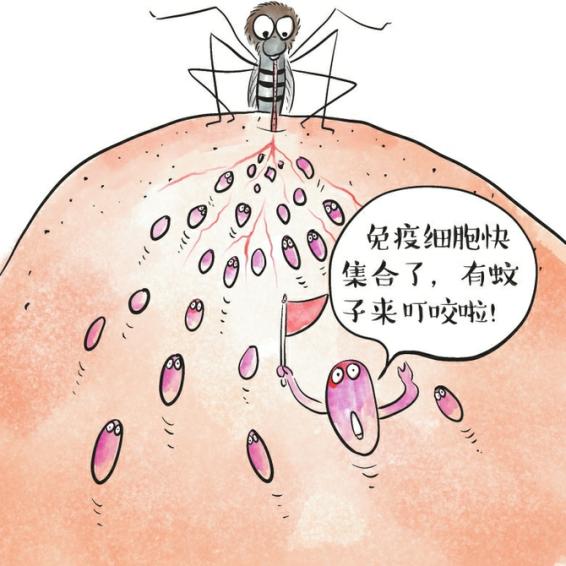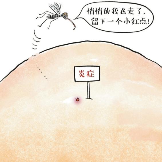 当再遇到同一种蚊子叮咬时,免疫系统会在几秒钟内召集众多免疫细胞。这些免疫细胞产生的物质会导致毛细血管扩张,产生瘙痒感并进一步诱发炎症,小红点就会变成又大又痒的包。