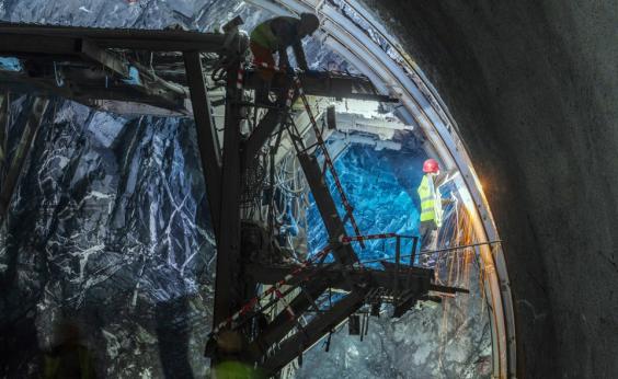 11月28日,夹金山隧道工程,工人正在加紧施工。杨涛摄