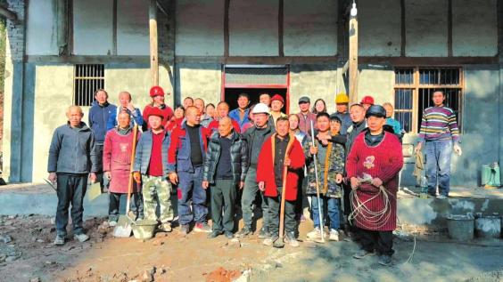 2月4日,乡亲们在韩兴海即将完工的屋前合影。受访者供图