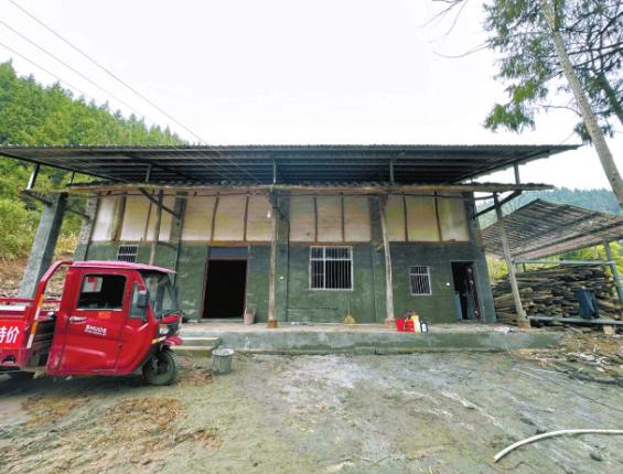循声望去,屋檐下,一位电工师傅正踩在梯子上,手里举着电灯泡。在他身后,外墙面已刷上水泥,摸上去还有点湿湿的;新换了钢质房门,上面的保护膜还没撕下来;正房旁边搭着一个小棚,里面堆满了柴火。