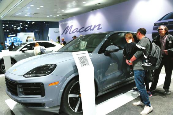 2024年3月29日,人们在美国纽约国际车展上参观。图据新华社客户端