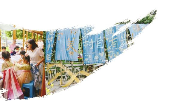 蓝染布技艺吸引了孩子们。