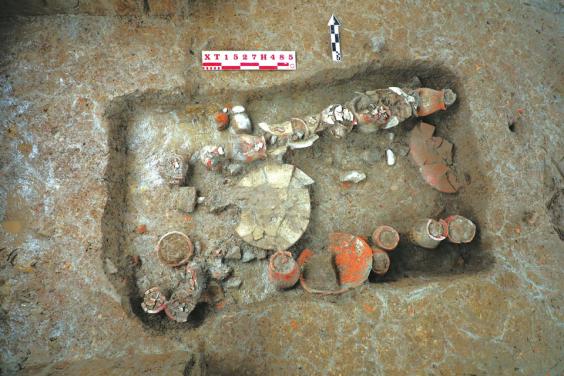 有了一定的物质基础,人们开始有了更多精神上的追求。下汤遗址的先民很有“仪式感”,各处台地上已发现了50多座器物坑,使得下汤遗址成为上山遗址群中器物坑最多的一处。