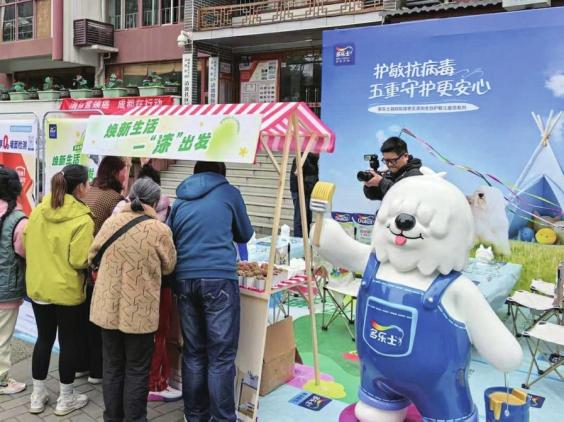 在活动现场,多乐士以“焕新生活一‘漆’出发”为主题打造的沉浸式展位最为亮眼,吸引众多居民关注,打通“墙面焕新最后一公里”,为社区涂刷提供方便快捷的服务。