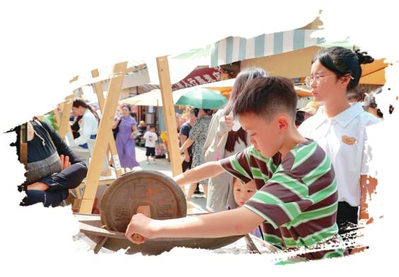 集市上,市民动手感受中医药魅力。