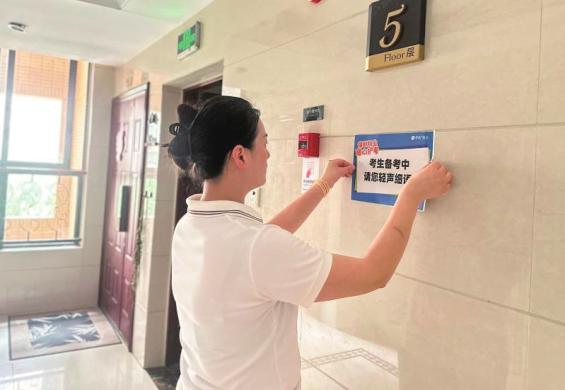 “执笔为剑战考场,静音守护助远航”——物业工作人员提前一周在小区各单元门、电梯间张贴醒目的静音提示语,用温馨语句呼吁业主装修停工、车辆禁鸣、夜间调低电视音量。同时,秩序维护部加强夜间巡逻,对广场舞、户外聚餐等可能产生噪音的行为进行柔性劝阻。业主王女士感慨:“孩子复习到深夜时,小区格外安静,物业的静音行动让我们很踏实。”