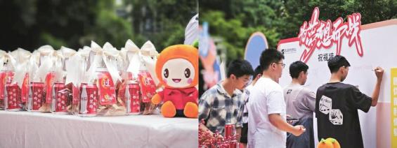 嘉诚新悦物业还别出心裁地为考生们准备了一系列寓意吉祥的礼物,将小区考生的名字印在定制的易拉罐上,还有一束束向日葵、一袋袋加油文具包、一串串十八籽,每一份礼物都寄托着物业对考生们金榜题名的美好祝愿,期望考生们能一举夺魁,实现自己的梦想。