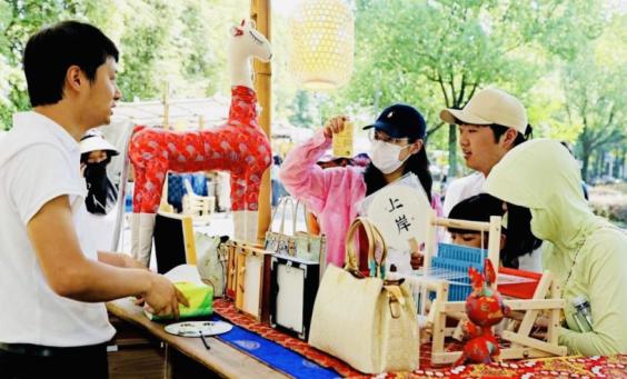 成都非遗市集上,50余个展位各具特色,汇聚了各类非遗代表性项目和以传统文化为主题的文创项目,集展示、销售、互动于一体,让市民游客体验非遗里的衣食住行,勾勒出“非遗+创意”的活力图景。美食市集为活动现场带来了十足的烟火气,另一边,非遗传统艺术展演,借木偶表演、民乐新编等演出多维彰显非遗传承的当代活力。