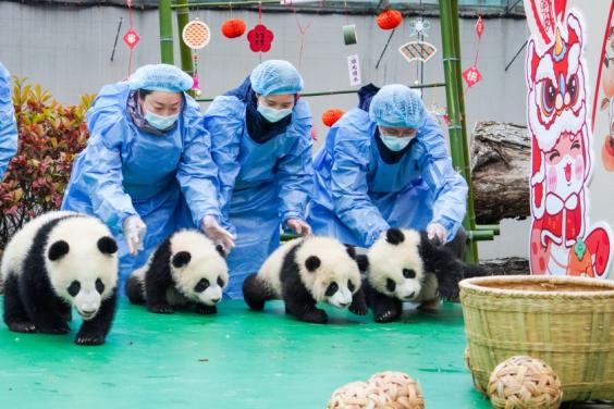 2025年1月23日,成都大熊猫繁育研究基地的大熊猫幼崽亮相。新华社发
