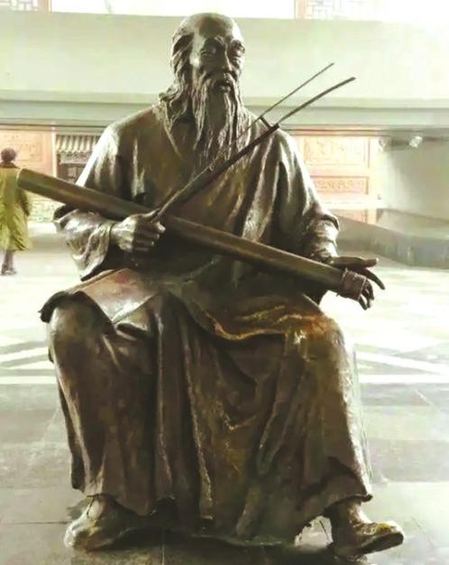 老成都民俗公园内竹琴大师贾树三雕像。 图据方志金牛