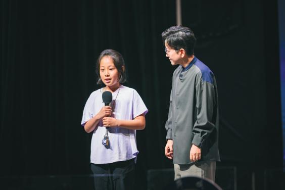 讲座现场,10岁小观众登台表演京剧选段。图据瑜音社 邵云飞