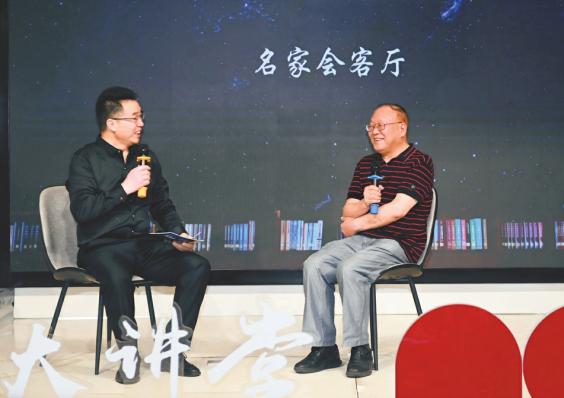 郑土有教授(右)与主持人海光现场对谈。雷远东摄
