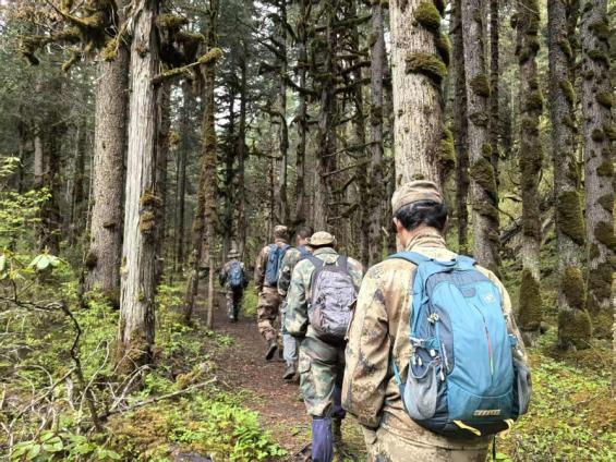 巡护队员在巡山途中。受访者供图
