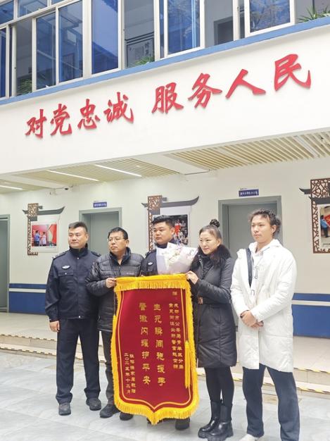 12月30日上午,成都市双流区市民张榕来到青羊区黄瓦街派出所,将一面锦旗交到民警赵世锦手中。锦旗上写着“生死瞬间施援手警徽闪耀护平安”十个大字,这是对赵世锦下班路上紧急救助患者最真实的概括。