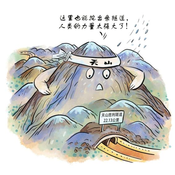 位于线路中段的天山胜利隧道,是其中最难的工程。这条隧道全长22.13公里,相当于5座南京长江大桥公路桥总长;隧道里最大地应力值将近22兆帕,相当于一块手指盖大小的岩石就要承受200多公斤重量;地面施工要适应3000多米的高海拔高寒环境,年平均气温零下5.4℃,最低气温可达零下41.5℃。