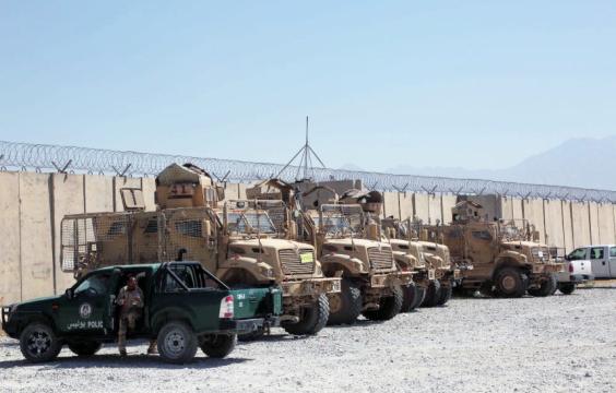 2021年7月8日,美军遗弃的军用车辆停放在阿富汗帕尔万省的巴格拉姆空军基地内。图据新华社客户端