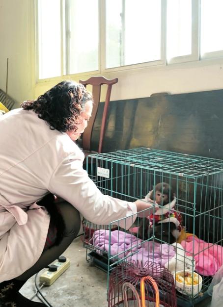 “被发现时,它扑在峨眉山一个水沟里,零下几摄氏度的气温,双爪都被冻坏了,救助人员赶紧把它送了下来。”李玉琴蹲在猴子旁边,把一颗葡萄喂到它嘴里。“它在鬼门关走了一遭,被吓坏了,刚来的时候,还咬了我一口。我给它喂食、按摩,晚上它才亲近人。”