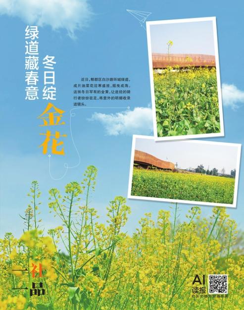 近日,郫都区白沙路环城绿道,成片油菜花迎寒盛放,摇曳成海。这抹冬日罕有的金黄,让途经的骑行者纷纷驻足,将意外的明媚收录进镜头。